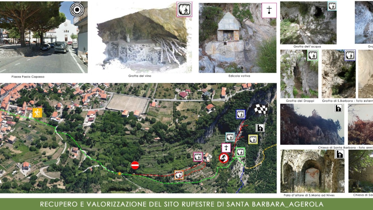 Al via un concorso di progettazione dell’intervento di recupero e valorizzazione del sito di Santa Barbara ad Agerola. La procedura telematica permetterà agli aspiranti di poter realizzare un piano di recupero in due gradi. Prevista l’assegnazione di due premi del valore complessivo di 4mila euro. Il percorso interessato parte da piazza Paolo Capasso e – seguendo la segnaletica Cai apposta lungo il sentiero – può arrivare nei pressi della Grotta di Santa Barbara.