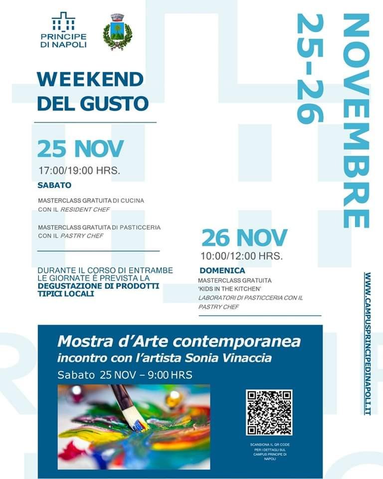 Quella prevista in programma sarà una full immersion nel gusto, aperta a tutti. Si andrà anche ben oltre il profilo strettamente culinario: sabato 25 novembre, infatti, gli ambienti del Campus ospiteranno un’imperdibile mostra d’arte contemporanea dell’artista Sonia Vinaccia. Sarà un’occasione, dunque, per coniugare la degustazione di eccellenze territoriali con la