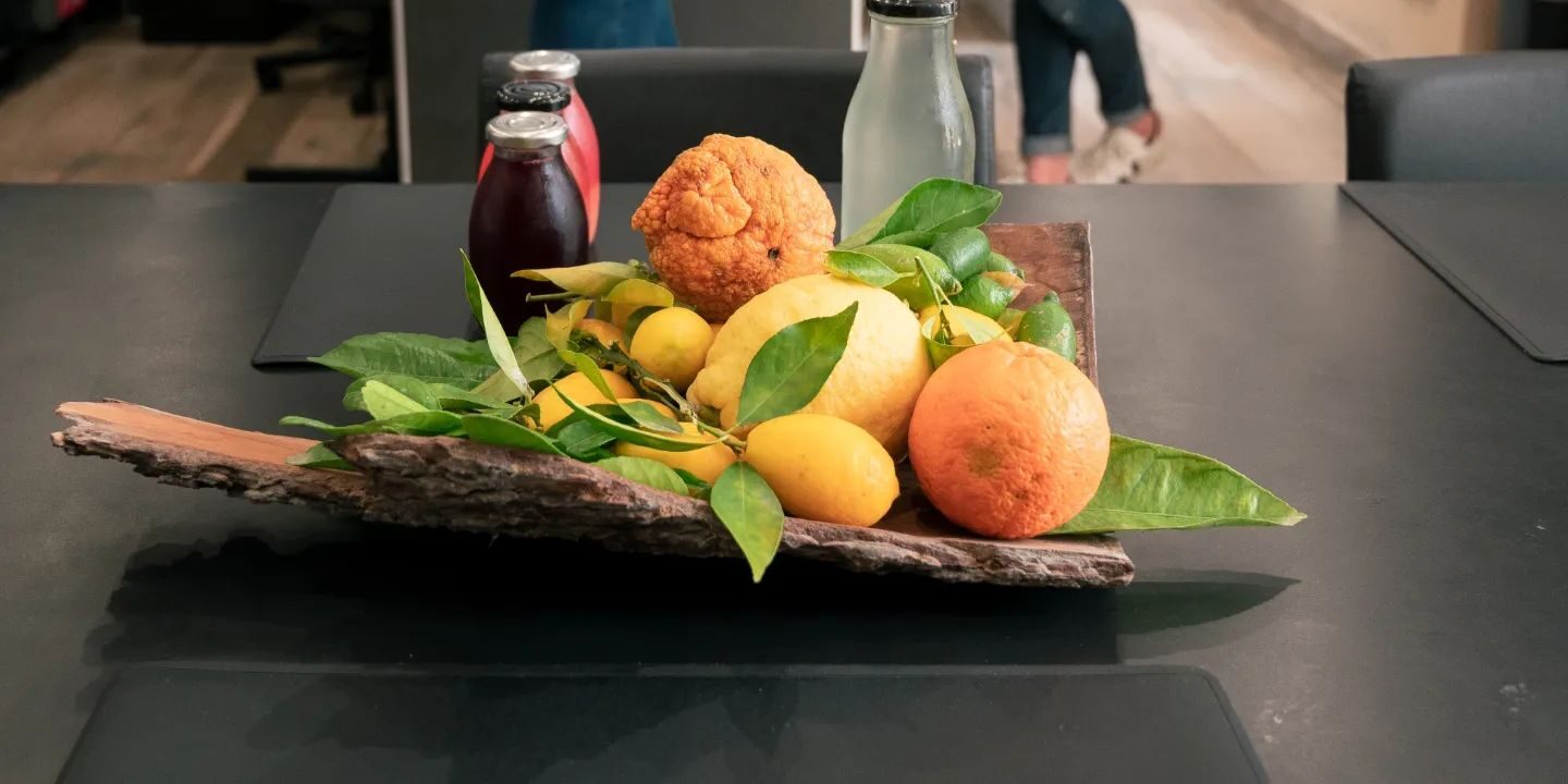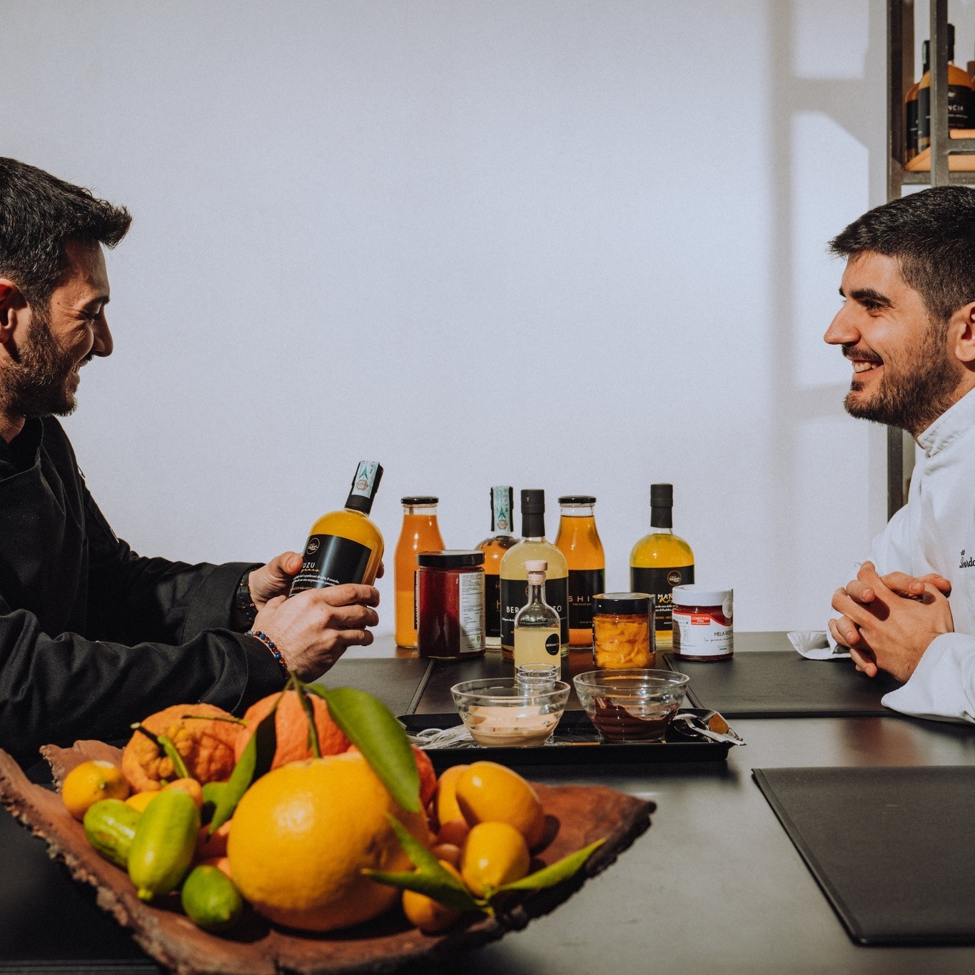 Gli agrumi, però, mostrano tutta la loro essenza anche nelle confetture, tutte cotte in vuoto ed a bassa temperatura: l’arancia si accompagna con il caffè o con il lime, il cedro con l’anice stellato, il kumqat, tra i fiori all’occhiello della produzione, ben si sposa con la pera e la cannella, il limequat con il caffè, il cacao o la mela fragola, il mandarino con l’ananas o i fichi rossi, mentre quelli secchi accompagnano la confettura di limone spezzandone la leggera acidità intrinseca del frutto.