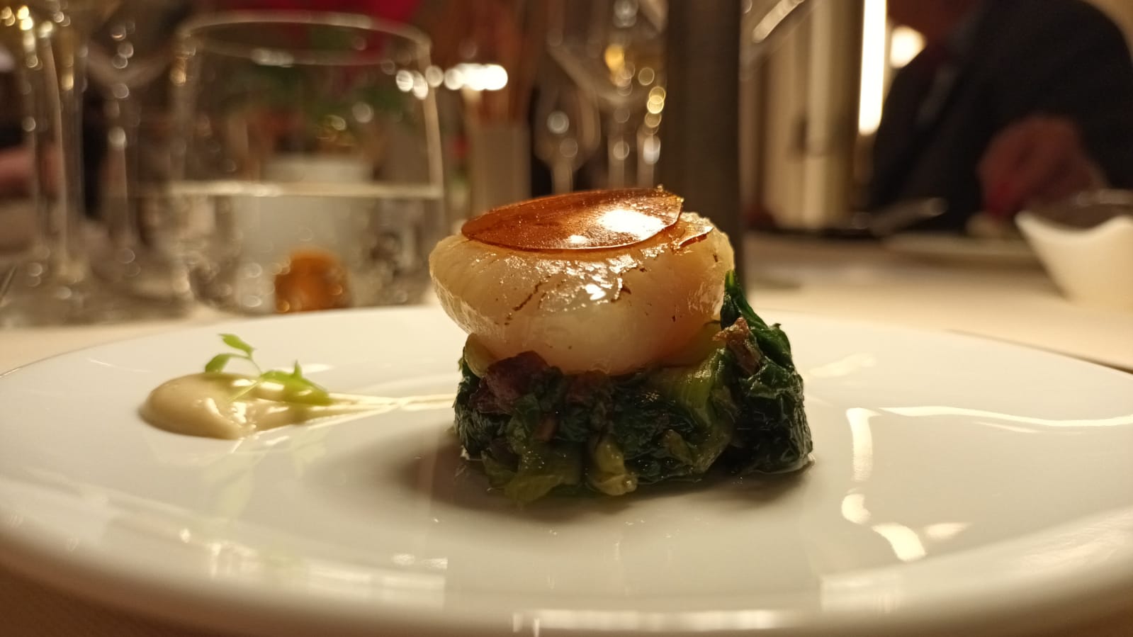 Il menù ha espresso a pieno, con i suoi piatti creativi basati, in buona parte, su materie prime provenienti dall’orto conventuale, la filosofia di fondo dello chef Lanuto, volta a rappresentare il territorio senza eccessivi sensazionalismi ma, al tempo stesso, stare al passo con i tempi: capasanta cotta, scarola ripassata e gelatina di tsuyu, baccalà marinato, giardiniera di verdure e crema di limone salato, tortello di zucchine, scampi e mandorle, spigola arrostita, sedano e gamberi rossi, babà al rhum, mandarino del convento e cioccolato.