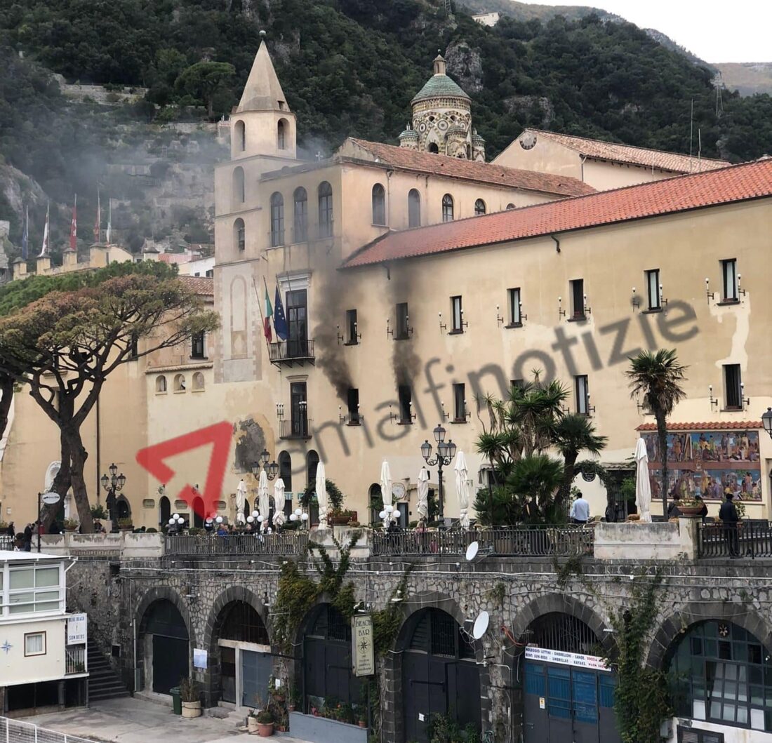 Un incendio è divampato questa mattina a Palazzo San Benedetto, sede del Comune di Amalfi.