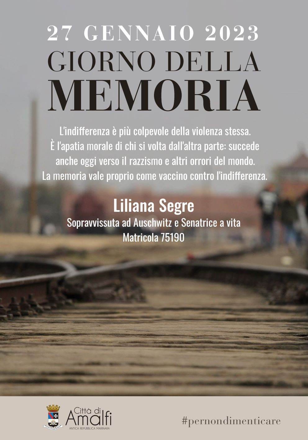 “L’indifferenza è più colpevole della violenza stessa. È l’apatia morale di chi si volta dall’altra parte: succede anche oggi, verso il razzismo e altri orrori del mondo. La memoria vale proprio come vaccino contro l’indifferenza”: le parole della senatrice a vita, Liliana Segre, sopravvissuta alla sciagura di Auschwitz, sono divenute, infatti, fonte di ispirazione per le celebrazioni della Giornata della Memoria nella città capofila della Costiera Amalfitana.