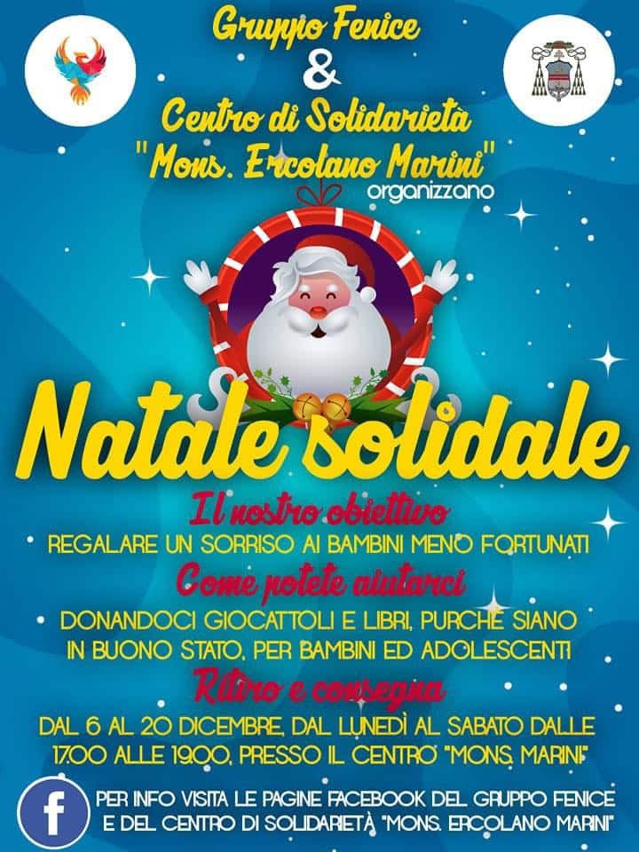 Natale non è ricevere ma è soprattutto donare. Sulla spinta di questo che il Gruppo Fenice ed il Centro di Solidarietà Mons. Ercolano Marini organizzano “Natale solidale”, un’iniziativa per venire incontro alle esigenze dei meno fortunati.
