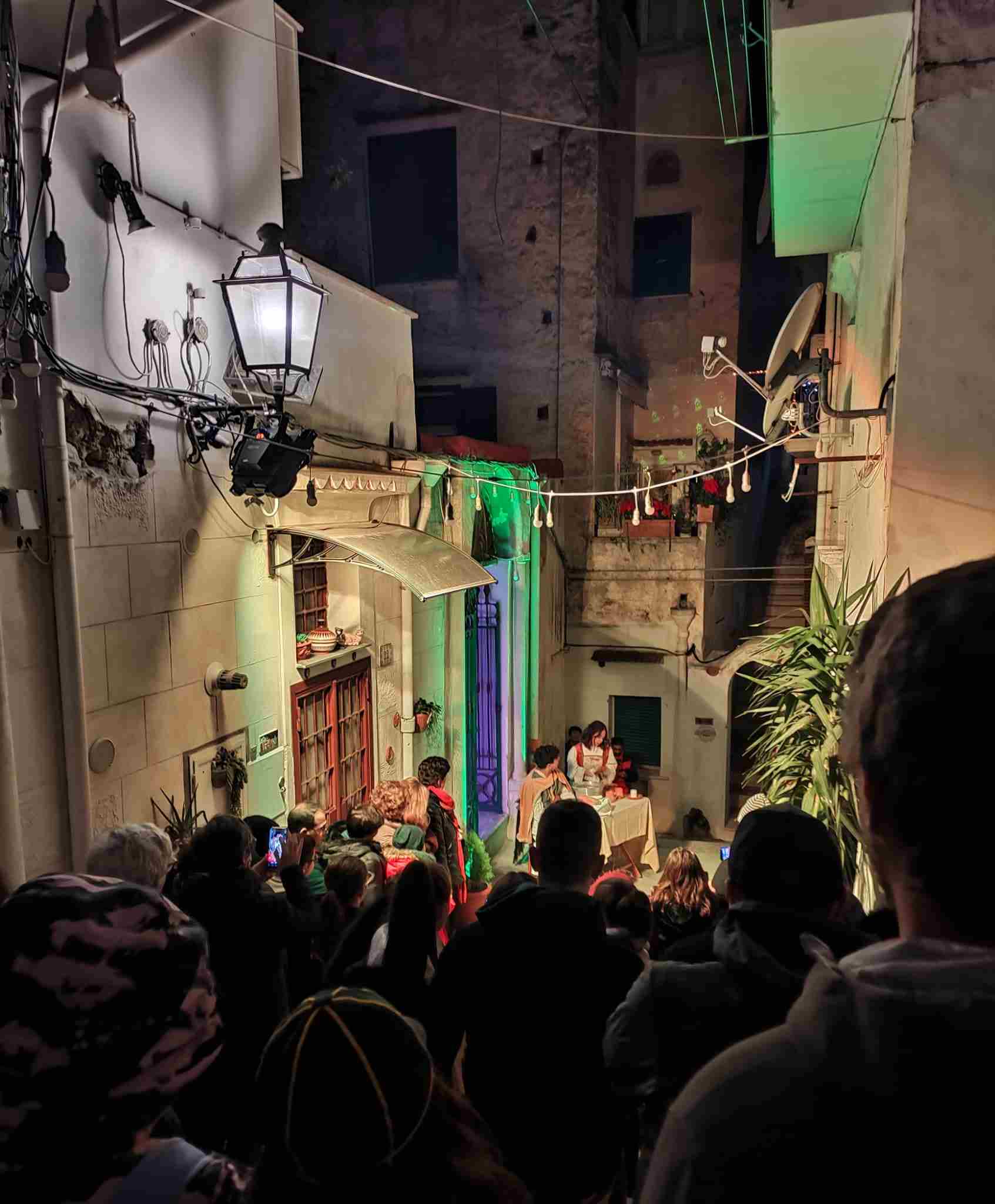 Svoltasi nella sera dell’Antivigilia di Natale, il 23 Dicembre, ha rappresentato una suggestiva rievocazione delle più importanti scene della natività, declinate nella caratteristica atmosfera natalizia del cuore pulsante della Divina. Prima tappa del percorso itinerante è stata Piazza Spirito Santo, in cui gli zampognari hanno suonato “Quanno nascette ninno”, canto della tradizione natalizia composto da Sant’Alfonso Maria de’Liguori agli metà del ‘700 ed antesignano di “Tu scendi dalle stelle”, cui ha seguito il Prologo della Santa Notte e la scena recitata delle lavandaie. Seconda tappa il Piazzale della Chiesa di Santa Lucia. Scena, quest’ultima, recitata nel piazzale antistante la Chiesa dai membri dell’Associazione Kaleidos.