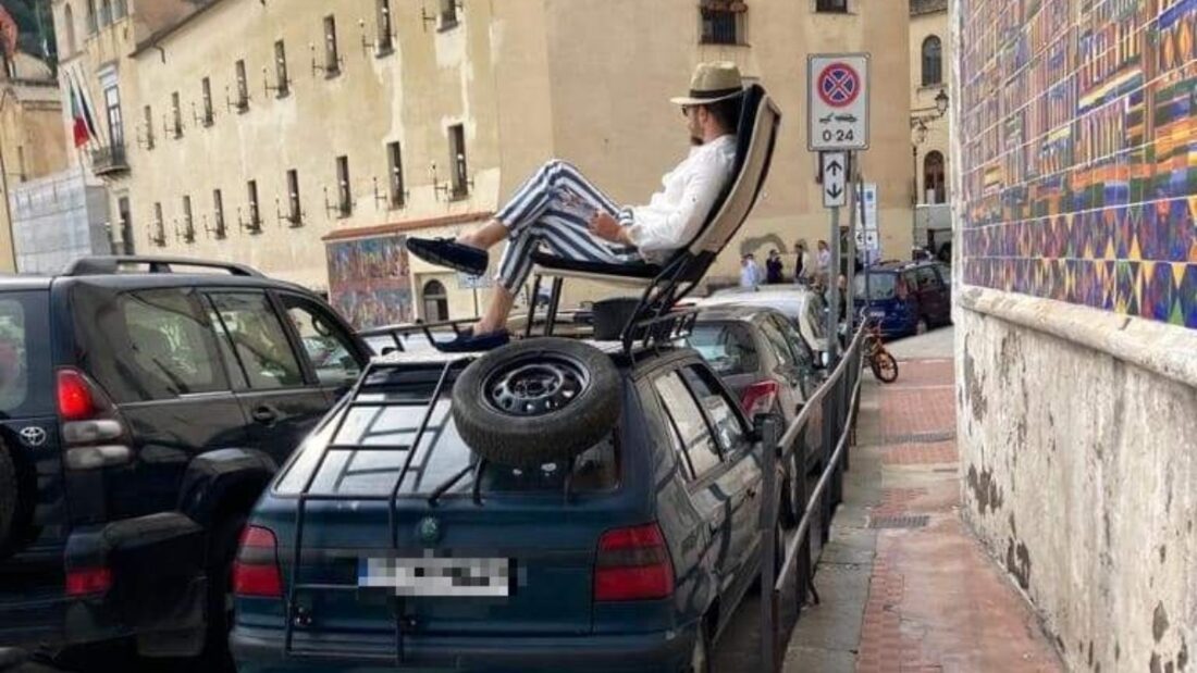 Si è messo comodamente seduto su di una sorta di sedia a sdraio ad ammirare il traffico paralizzato un turista bulgaro, all’ingresso di Amalfi, poco distante dal Municipio.