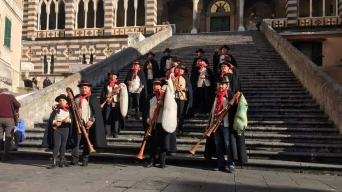 Si tratta di un evento fortemente identitario, in cui gli zampognari, con i loro abiti iconici, la loro giacca di montone, il mantello nero, il cappello di velluto decorato con nastri e le “zaricchie” ai piedi, continueranno ad andare in giro per le strade di Amalfi, accompagnando il rituale liturgico per la Novena del Natale (che va dal 16 al 24 dicembre).