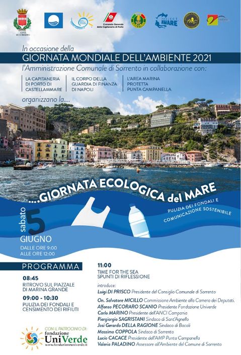 Oggi, sabato 5 giugno, a partire dalle ore 9, a Marina Grande, in occasione della Giornata Mondiale dell’Ambiente, il Comune di Sorrento organizza la Giornata Ecologica del Mare.