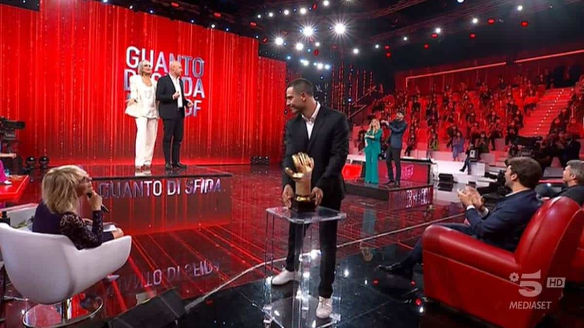 Era il momento della presentazione della sfida tra i professori, come di consueto Maria De Filippi ha fatto entrare il premio.
