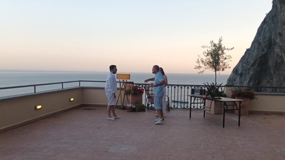 La location prescelta come set della nuova canzone del cantautore napoletano è stata l’Anantara Hotel Convento di Amalfi, specie nei suoi spazi esterni, che sovrastano il Chiostro dell’antico convento dei Cappuccini, con una vista mozzafiato sulla baia della città.
