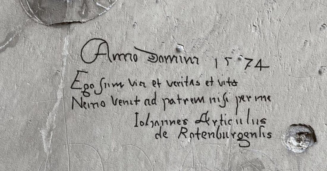 Tali scritte, potrebbero appartenere a prigionieri reclusi in questi spazi, ricordano gli archeologici. Tra i graffiti spicca quello di “Johannes Articulus de Rotenburgensis”, forse un monaco luterano.