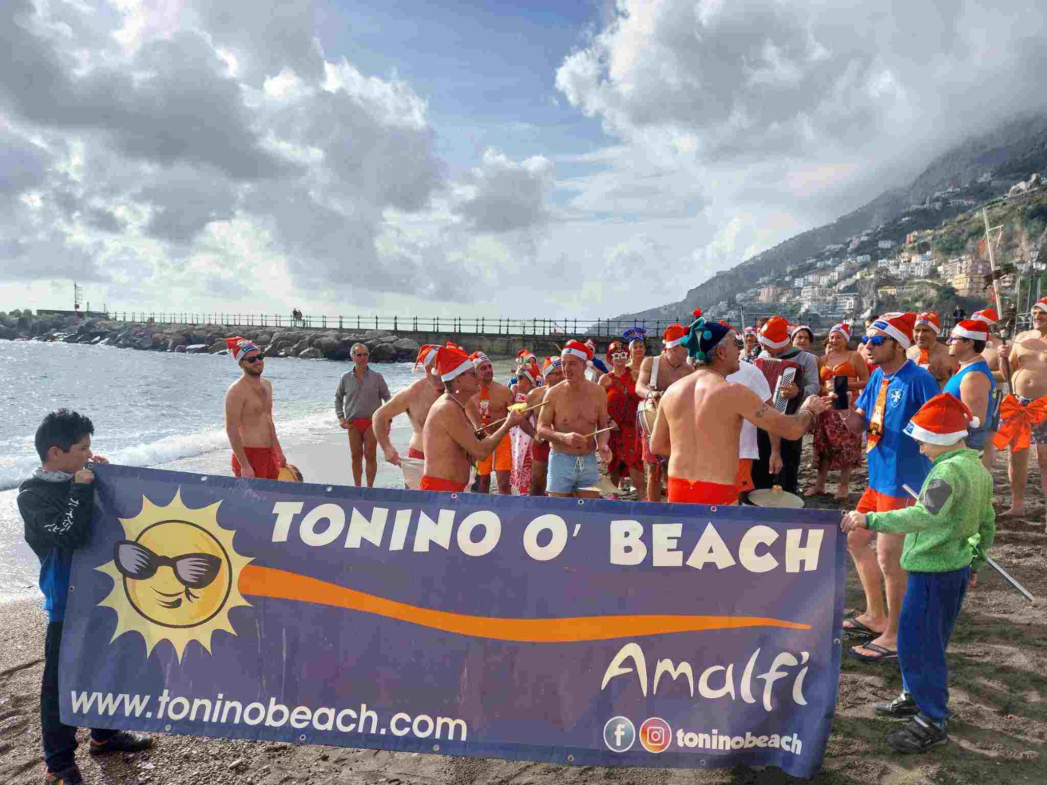 Come iniziare il nuovo anno nella maniera migliore se non con un tuffo in mare?. Ad Amalfi nel primo giorno del 2024 la tradizione del brindisi in spiaggia è stata rispettata. Le temperature e le condizioni climatiche, pur non essendo proibitive, non erano clementi come il 1 Gennaio del 2023, quando si superarono i 20 gradi, quasi a preannunciare le numerose ondate di caldo record che ne avrebbero contraddistinto la stagione estiva.