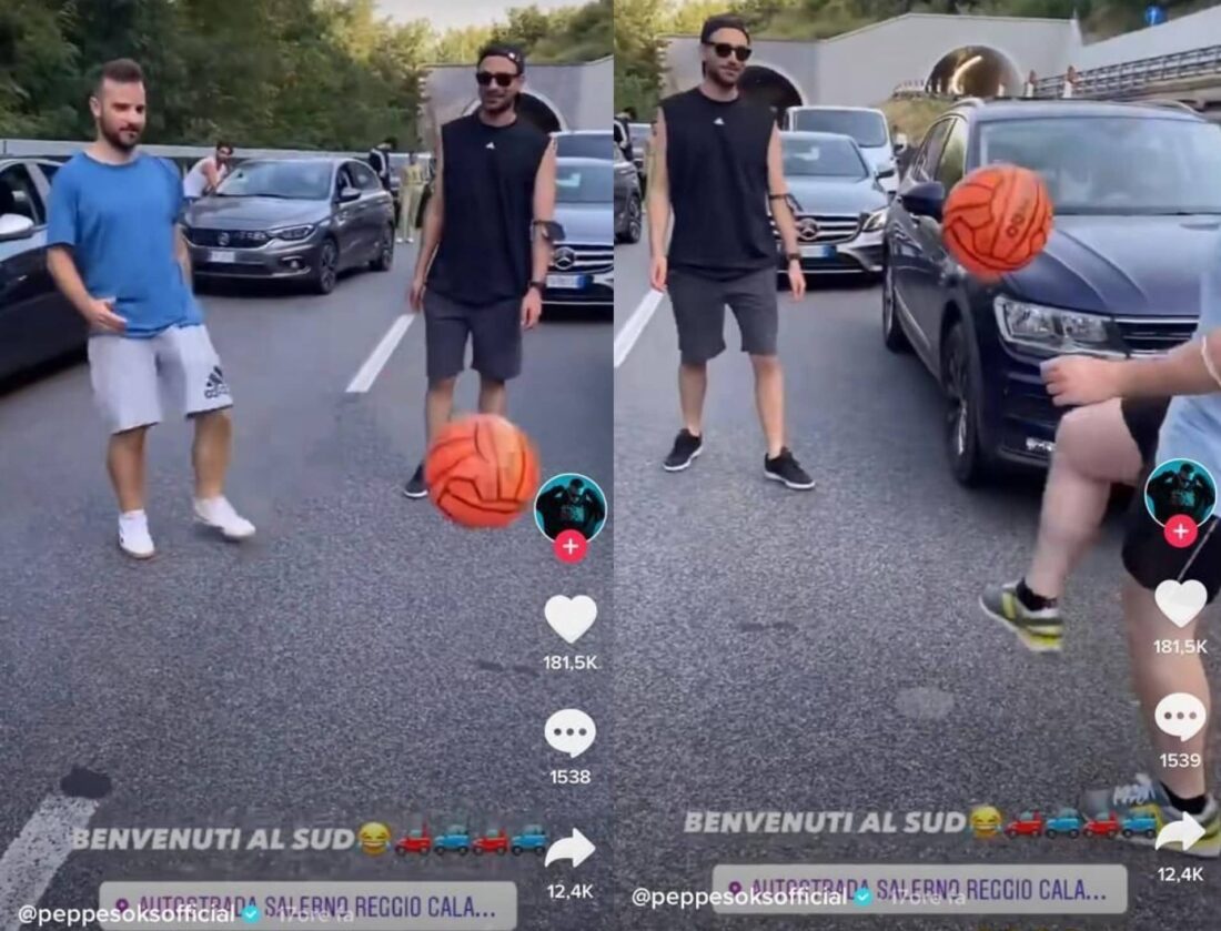Benvenuti al sud da film alla realtà. Sembra essere proprio una delle scene più conosciute del celebre lavoro di Claudio Bisio e Alessandro Siani. Alcuni ragazzi rimasti bloccati nel traffico sull’autostrada Salerno-Reggio Calabria e decidono di giocare a pallone.