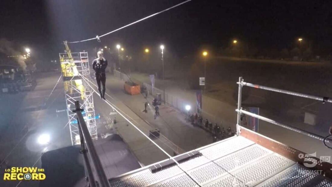 Proprio l’esibizione di Maurizio Zavatta si è proposta come un momento ricco di tensione. Infatti è successo qualcosa di inaspettato, durante il tentativo dell’uomo di battere il suo record. Zavatta era giunto quasi alla fine del percorso, ma qualcosa non deve essere andato per il verso giusto, perché improvvisamente ha perso l’equilibrio.