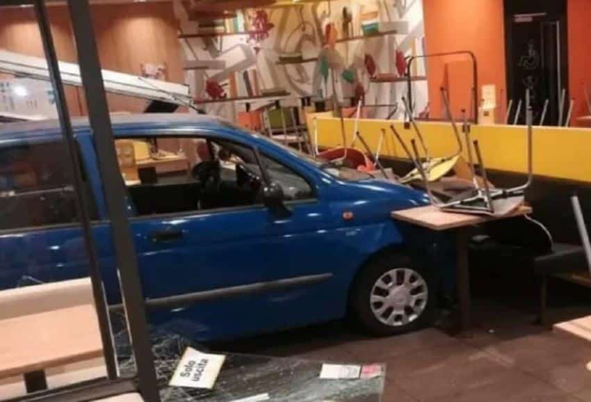 Incidente che si sarebbe potuto trasformare in tragedia in Campania. Finisce con la sua auto nella vetrina di un fast food.