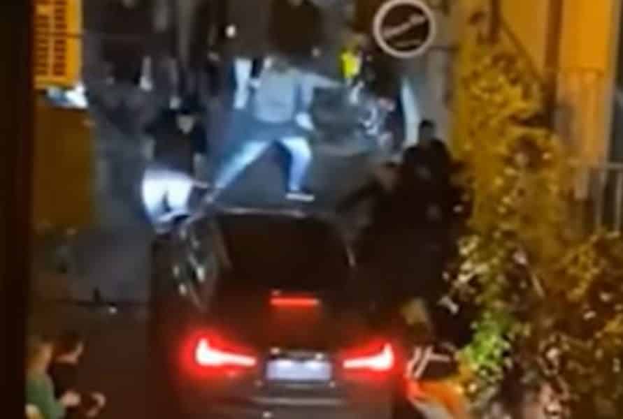 Nel video, pubblicato sui social dal consigliere regionale Francesco Emilio Borrelli, si vede l’auto che prima procede a marcia indietro, colpendo alcuni presenti.