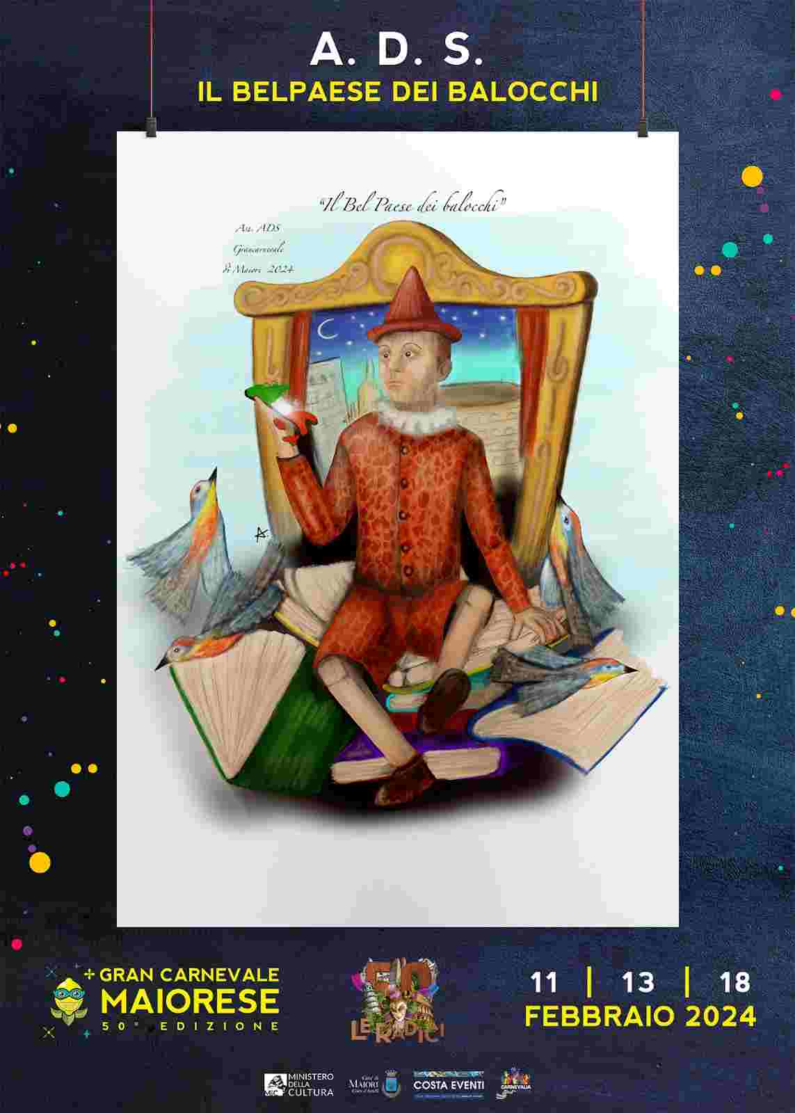 Il Gran Carnevale di Maiori andrà a raccontare l’Italia nella sua essenza attraverso la cartapesta in occasione della sua 50esima edizione in programma dall’11 al 18 febbraio 2024. In linea con l’anno delle radici italiane promosso dal Ministero degli Affari Esteri e della Cooperazione Internazionale. Saranno cinque le monumentali opere che sfileranno sul lungomare della cittadina della Costiera Amalfitana in occasione del Carnevale 2024.