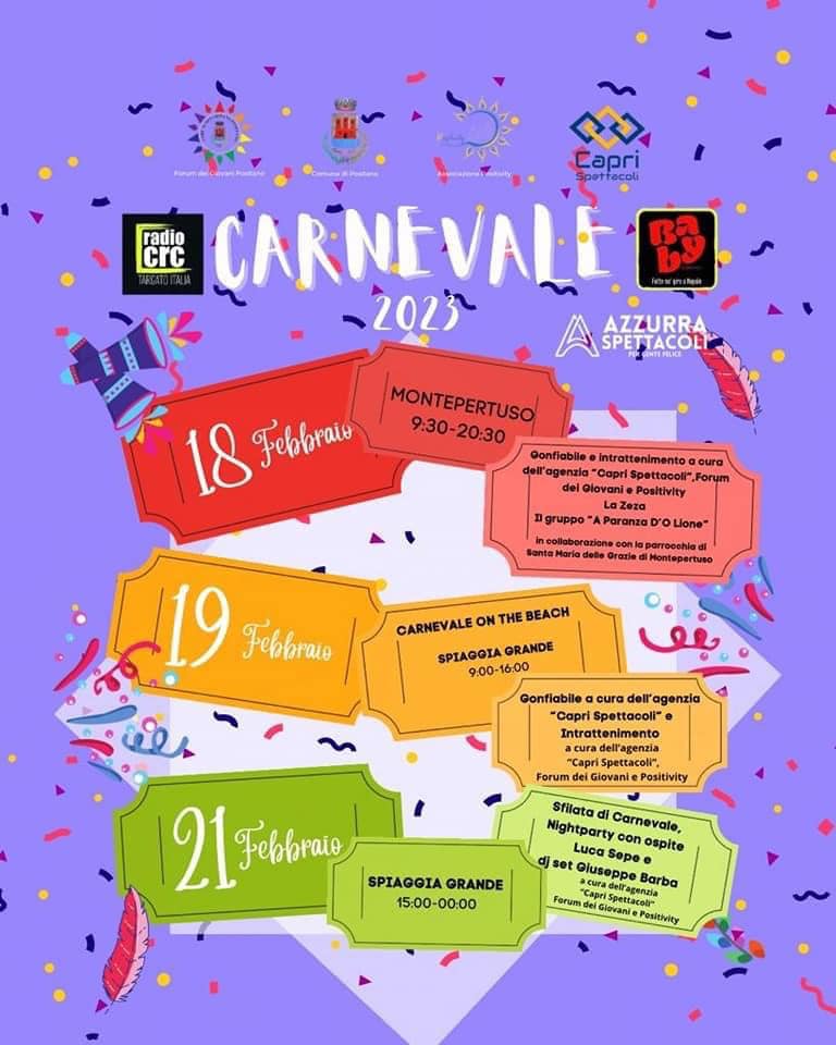Sarà un Carnevale all’insegna della spensieratezza, del divertimento e di tanti interessanti appuntamenti quello che si svolgerà a Positano a partire dal prossimo fine settimana.