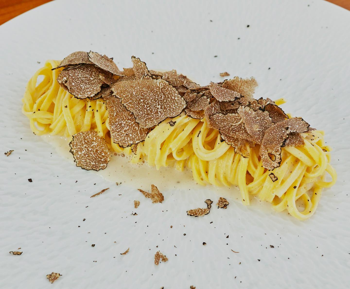 Una cucina sicuramente corposa e goduriosa, ma mai stucchevole, che si concretizza anche in proposte classiche come il tagliolino con cacio, pepe e tartufo nero, oppure, il baccalà in tempura, e la pancia di maiale, e chutney di melanzane e fondo al mirtillo, che sa far aprire il sipario su dessert tra tradizione e innovazione.