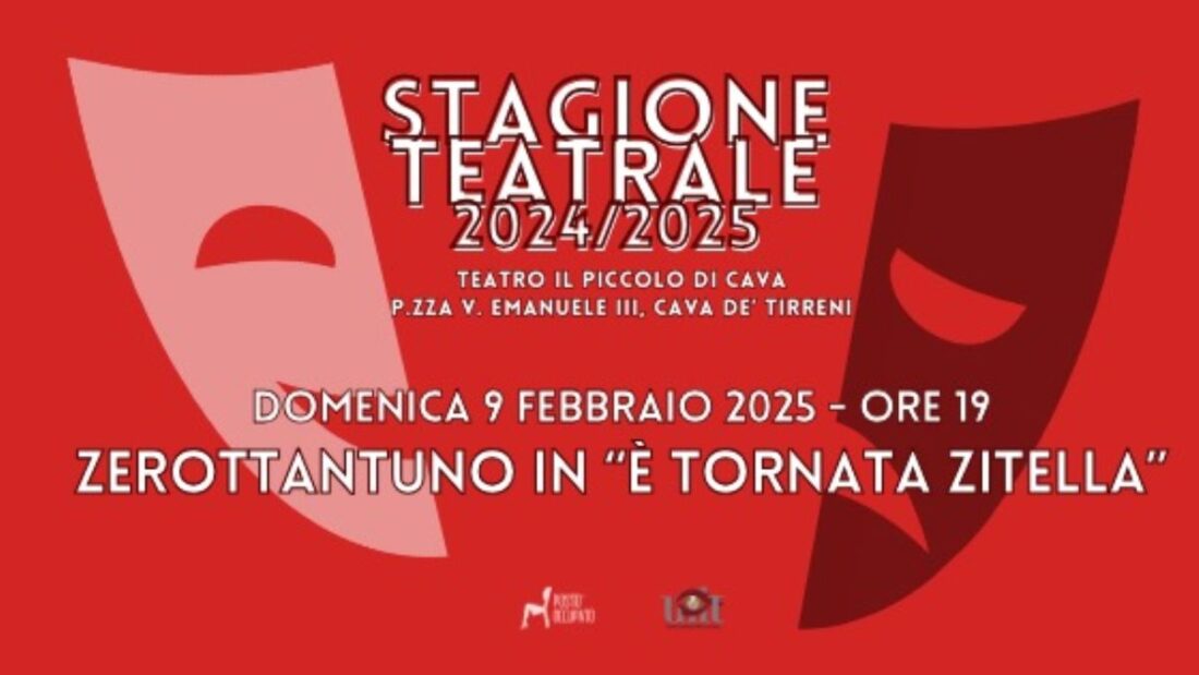 Domenica 9 febbraio dalle 19 al Teatro “Il Piccolo di Cava” in Piazza V. Emanuele III a Cava de’ Tirreni, la compagnia Zerottantuno presenterà la commedia brillante È tornata zitella. Un cavallo di battaglia della compagnia napoletana, con all’attivo più di centoquaranta repliche di un testo che affonda le radici nella comicità francese, e giunge in Italia per essere reinventato sugli schemi della grande tradizione nostrana.