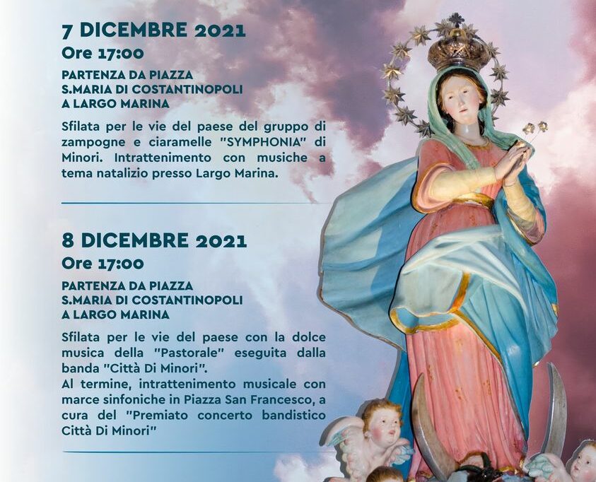 I festeggiamenti continueranno mercoledì 8 dicembre con la musica della “Pastorale” eseguita dalla banda “Città Di Minori”, che sfilerà per le vie del paese, dalle ore 17.