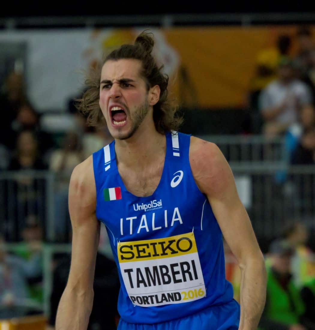 Gianmarco Tamberi è nato a Civitanova Marche il 1° giugno del 1992. Il primo grande risultato è arrivato a soli 24 anni quando ha conquistato la medaglia d’oro ai Mondiali indoor di Portland con la misura di 2,36.