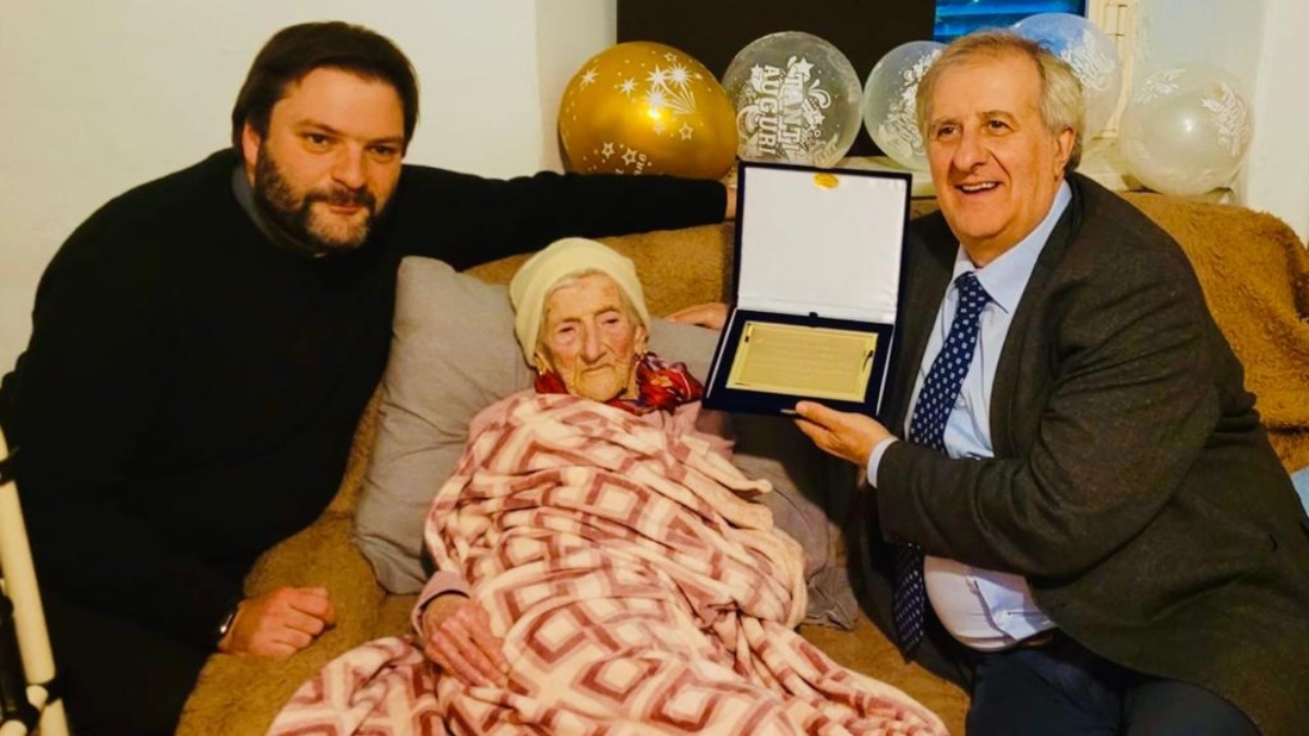 Alla nonnina, come si nota dagli scatti realizzati in occasione dell’importante momento di festa, è stata consegnata una targa celebrativa per il lieto evento.