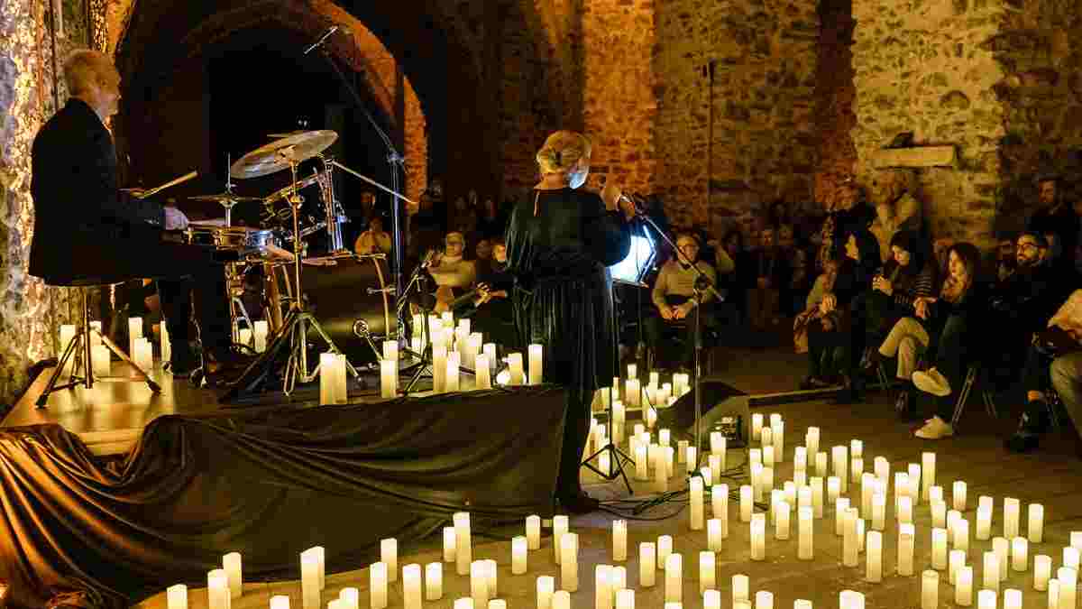 Il suono si fa spazio tra le volte, gli archi e le colonne dell’antico Arsenale: la roccia viva risalente all’età medioevale, illuminata dalla sola luce delle candele, crea un’atmosfera suggestiva, unica.