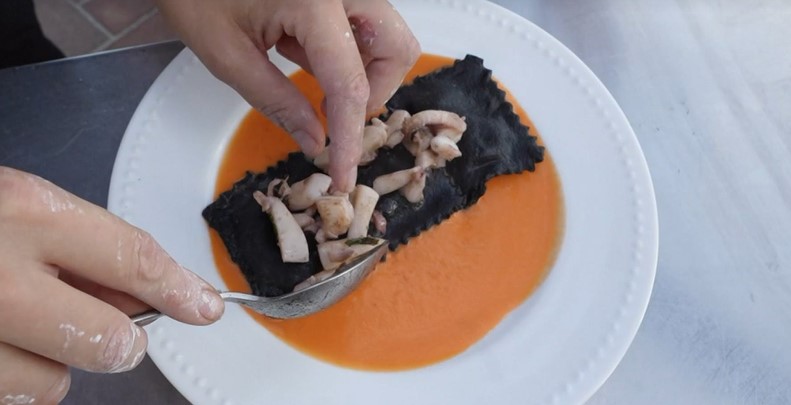 Non solo eccellenze agricole, ma anche del mare, con lo show-cooking della chef vietrese Nausica Ronca, che ha illustrato la preparazione dei ravioli artigianali con le seppie ed il proprio nero.