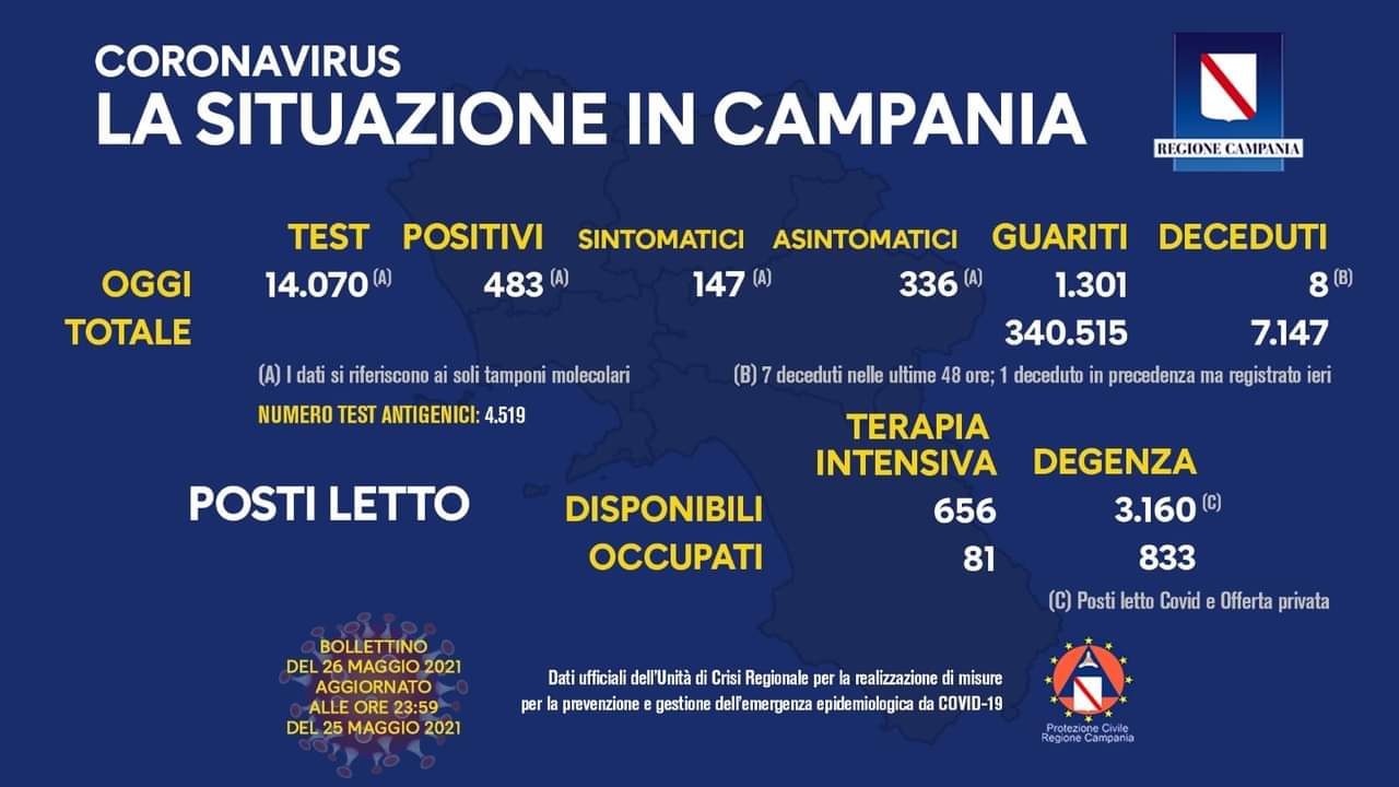 Oggi si contano 483 nuovi positivi di cui 336 asintomatici e 147 sintomatici e sono stati processati del giorno: 14.070 tamponi molecolari e 4.519 tamponi antigenici.
