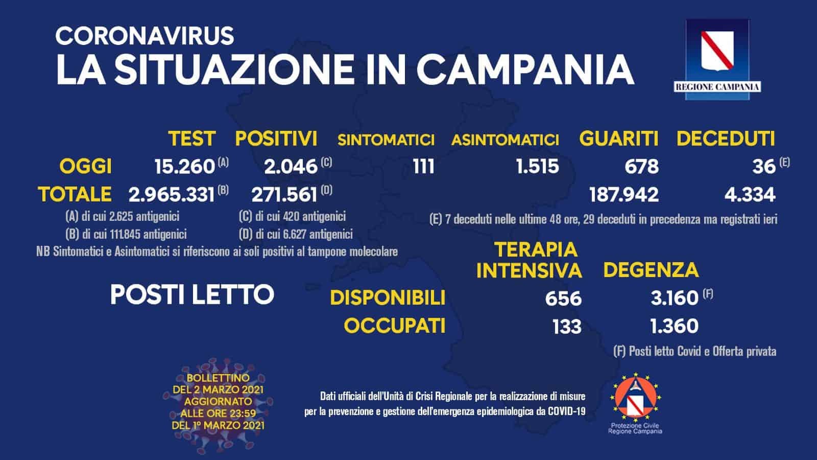 Oggi si contano 2.046 nuovi positivi di cui 1.515 asintomatici e 111 sintomatici e sono stati processati 15.260 tamponi. Il totale delle persone positive al virus da inizio epidemia è di 271.561 e sono stati processati in totale 2.965.331 tamponi.