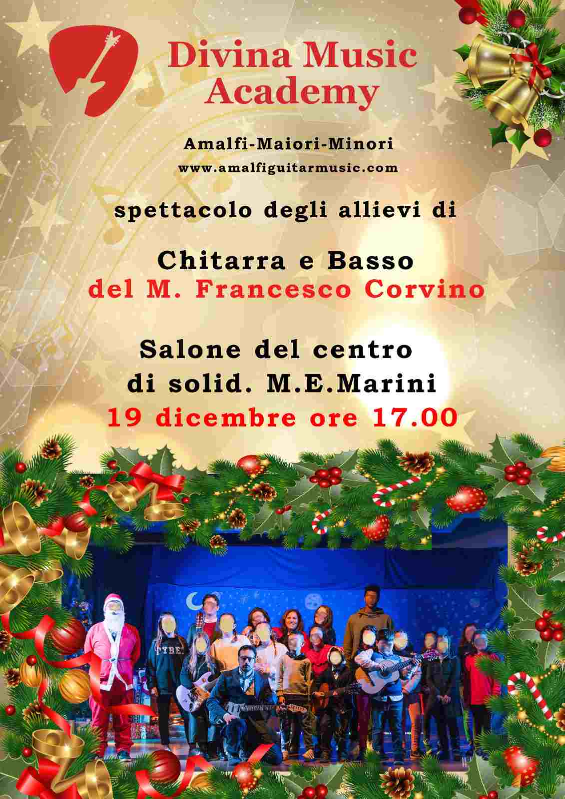 Si terrà, infatti, il 19 Dicembre a partire dalle 17, lo spettacolo degli allievi di chitarra e basso del Maestro Francesco Corvino e quello di canto e pianoforte del Maestro Nuccia Paolillo.