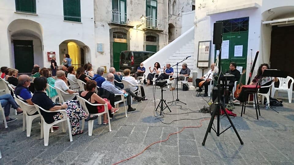 Tutti in attesa che il direttore organizzativo del festival Alfonso Bottone illustri il programma della kermesse culturale che poi si snoderà tra i sagrati delle chiese di Praiano e Conca dei Marini, il Convento di San Domenico di Maiori, la piazza-salotto di Atrani, le piazzette della pasta a mano di Minori, la terrazza della Torre Vicereale di Cetara, le sale affrescate di Palazzo Mezzacapo di Maiori, il Sentiero dei Limoni tra Minori e Maiori, il Giardino Segreto dell’Anima di Tramonti, il fronte mare di Marina di Vietri, chiese e teatri di Salerno, il consesso consiliare di Tramonti, sedi associative salernitane, ad accogliere fino al 17 Luglio 2022 i “Salotti letterari” con i 44 autori di novità letterarie in concorso per il Premio costadamalfilibri, opera del maestro ceramista vietrese Nicola Campanile, nelle sezioni Narrativa/Saggistica, Giallo/Noir, Antologia.
