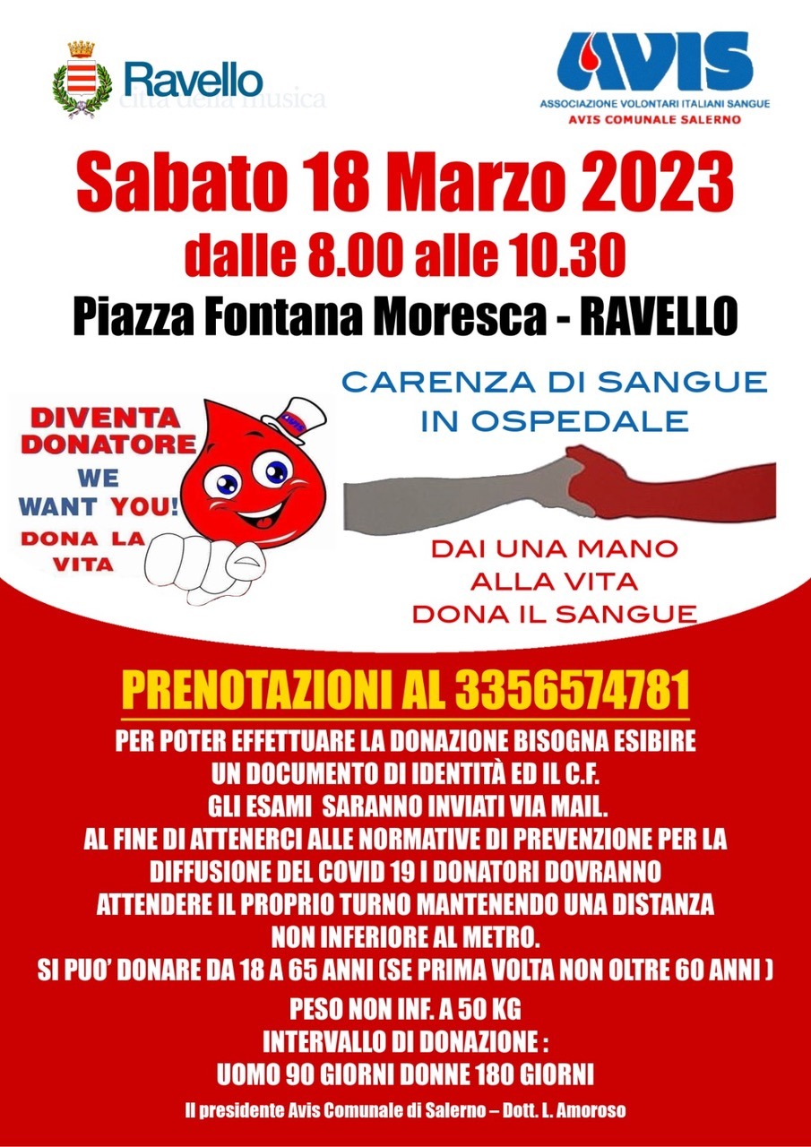 Una nuova giornata all’insegna delle donazioni del sangue, a Ravello, è prevista in programma in questo fine settimana.