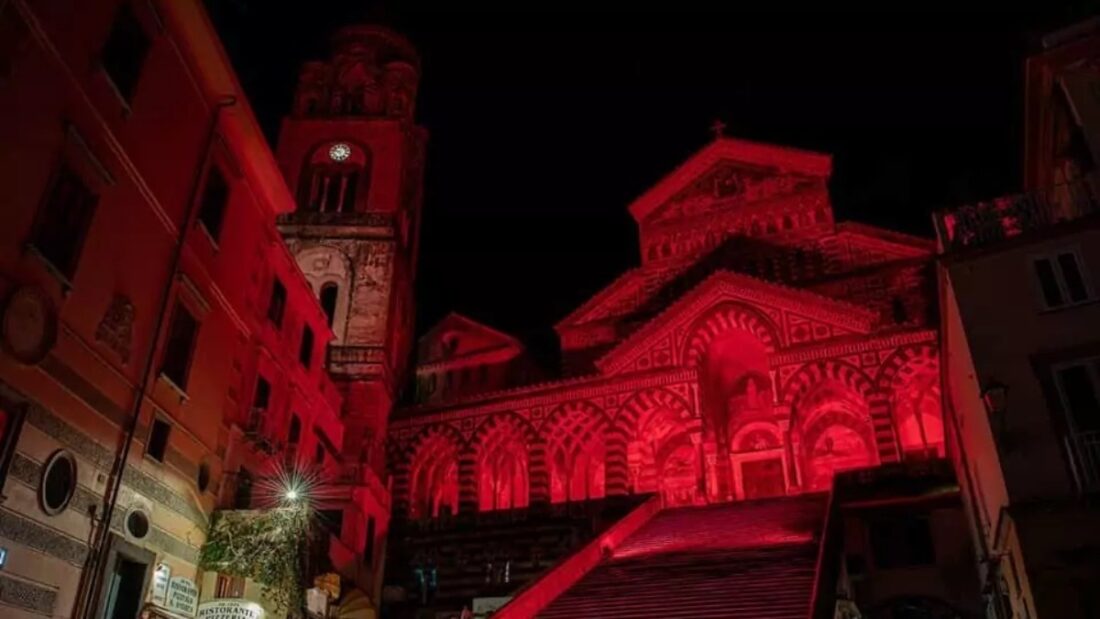 L’amministrazione comunale di Amalfi, guidata dal sindaco Daniele Milano, ha deciso di rinnovare ancora una volta il messaggio contro ogni forma di violenza, di sudditanza psicologica o di sottomissione economica, attraverso il monumento simbolo della città e della Costiera Amalfitana, vale a dire la Cattedrale di Sant’Andrea, riconosciuta in tutto il mondo: le arcate, la facciata, le scale si colorano di rosso, in una sintesi visiva dell’urlo del dolore per scardinare le coscienze.