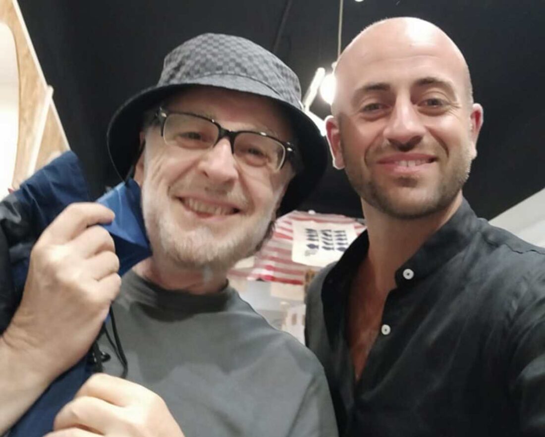 Cappello e giacca impermeabile, il maestro De Crescenzo è stato riconosciuto da Gianpiero: immancabile la foto di rito a cui De Crescenzo non si è affatto tirato indietro.