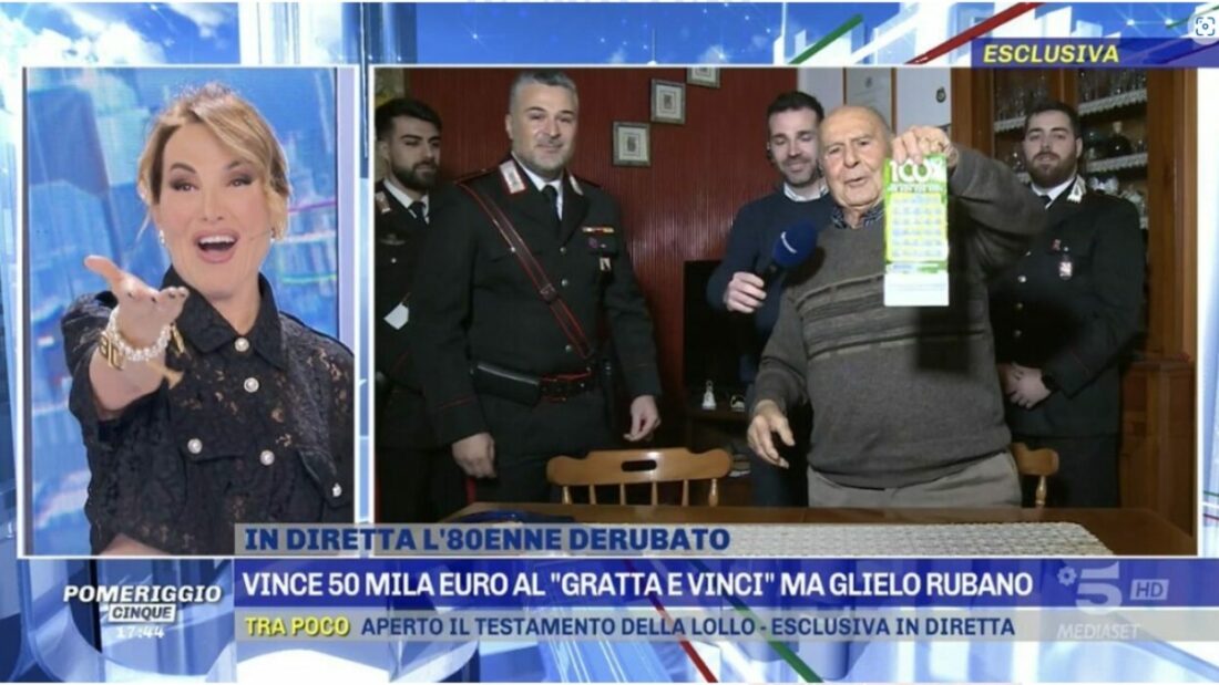 Collegatosi a distanza con la popolare trasmissione di Canale 5, i carabinieri hanno restituito all’anziano vedovo, originario di Caselle, ma residente a Villammare, frazione costiera di Vibonati e nota località turistica, proprio il tagliando da 50 mila euro che gli era stato sottratto.