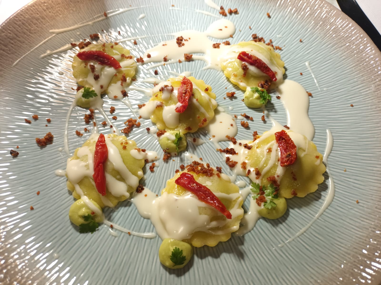 Un piatto estremamente innovativo e d’impatto primaverile, cui si affiancano portate classiche rivisitate come la “Caprese Antica Cartiera”, ma anche – e soprattutto, proposte all’insegna del mare: tartare di tonno rosso, porro, limone ed erbette mediterranee, passatina di piselli con calamaretti, baccalà di nome e di fatto con scarole, olive, papaccelle e broccoli verdi.