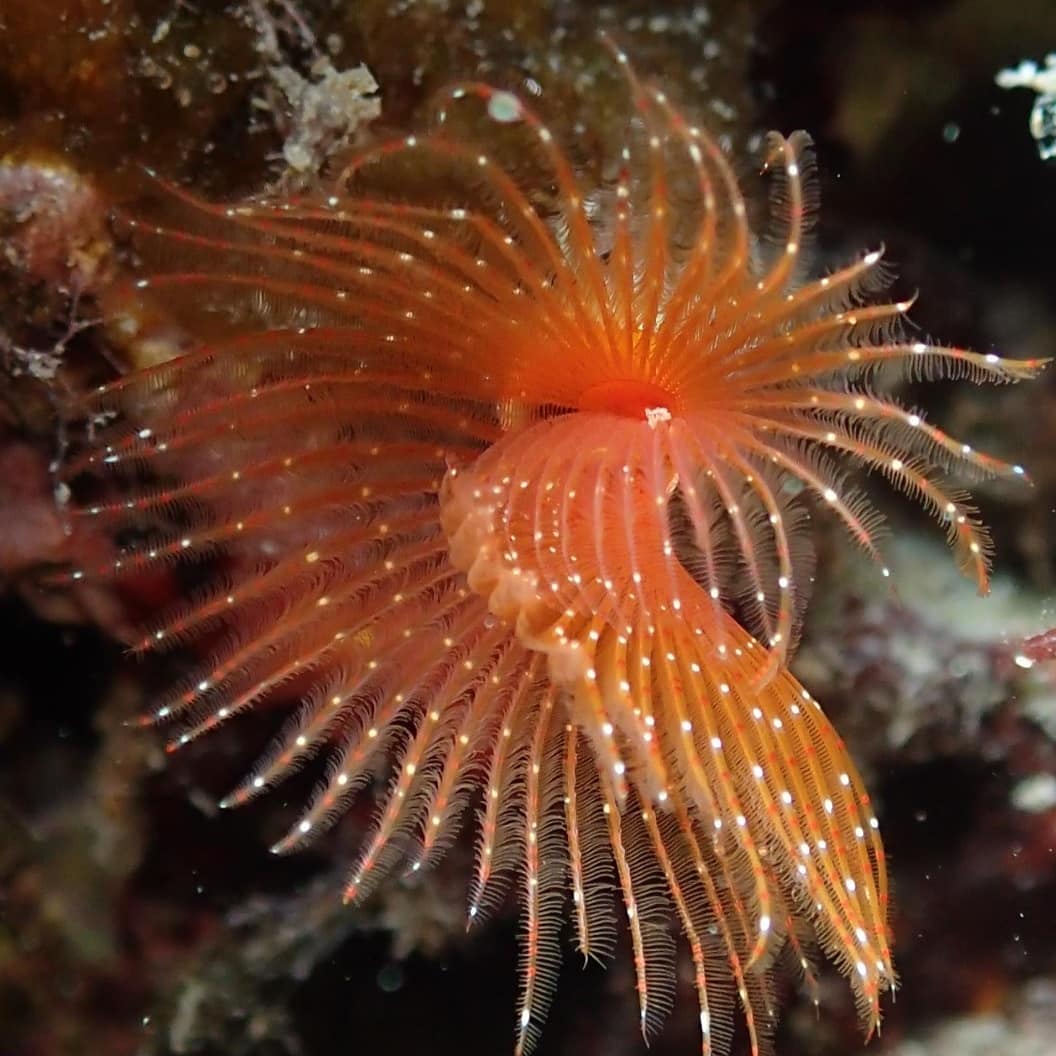 Anche spugne e madrepore sono ben presenti, soprattutto in anfratti e grotte, che caratterizzano la baia anche a pochi metri di profondità. Nella check list ci sono anche circa 30 specie da attenzionare. 12 sono endemiche, come l’anemone a disco e la spugna Agelass.