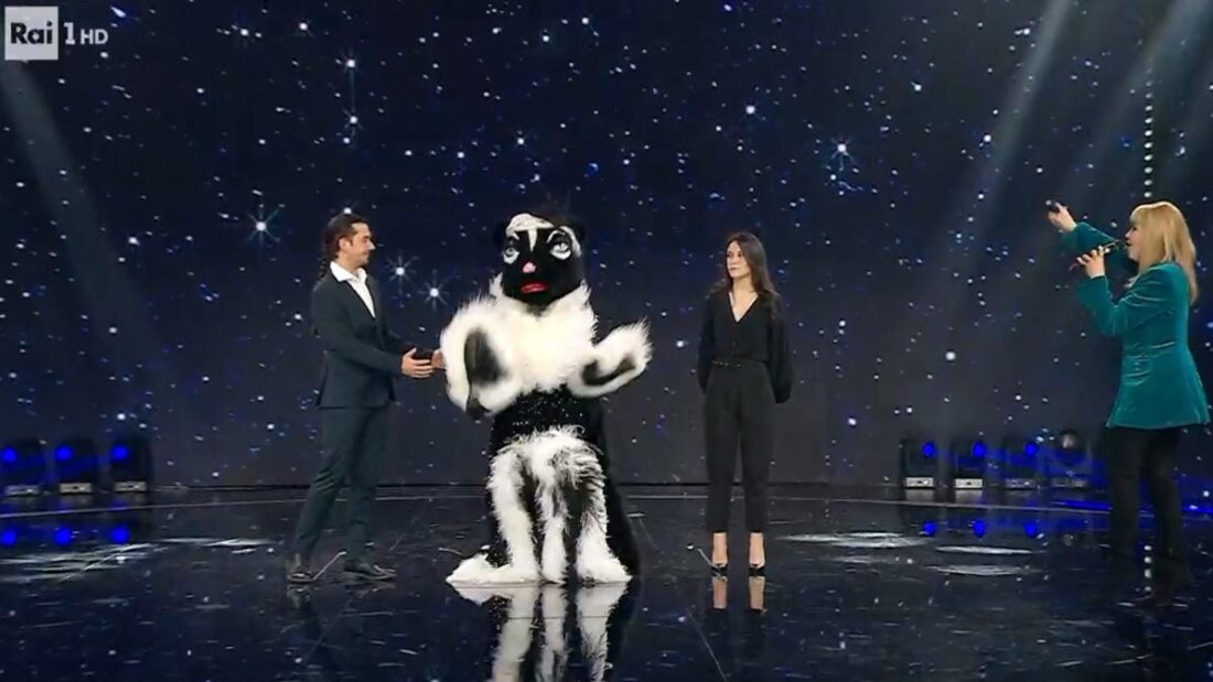 Francesco Facchinetti ha usato la maschera d’oro per smascherare lo Scoiattolo Nero facendo il nome di Adriana Volpe ma non c’era lei a dare voce alla maschera.