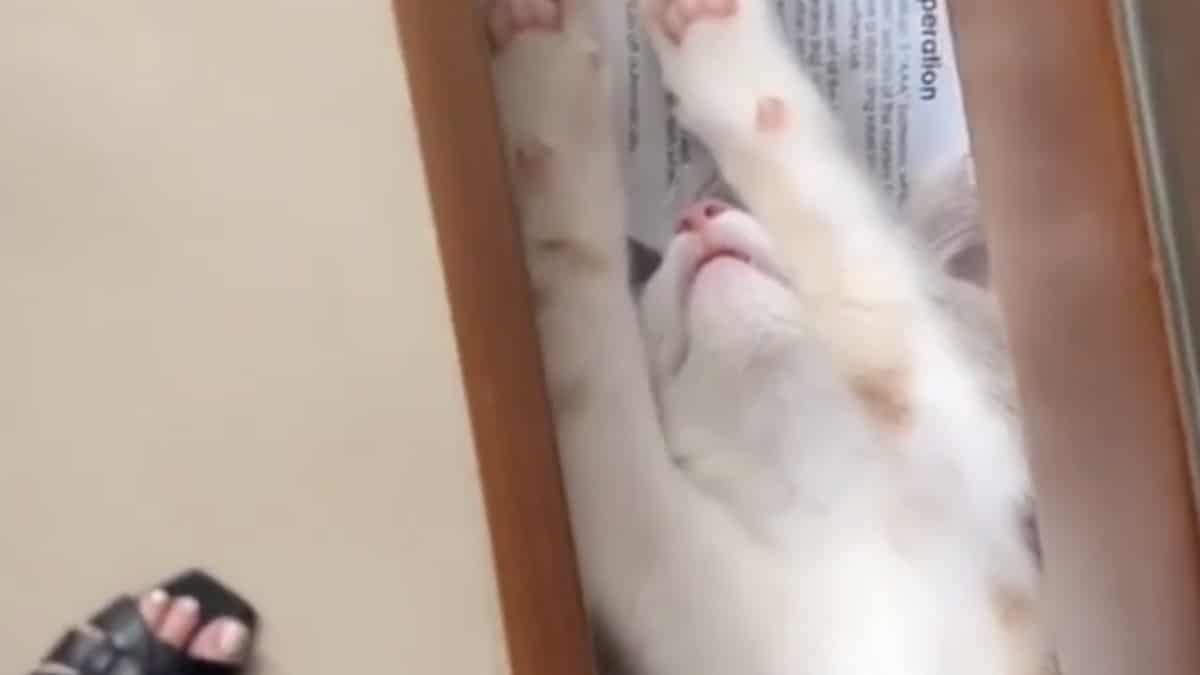 Avendolo visto in quella posizione, la sua mamma adottiva ha registrato un video che ha postato su Instagram e che in poco tempo è diventato davvero virale.
