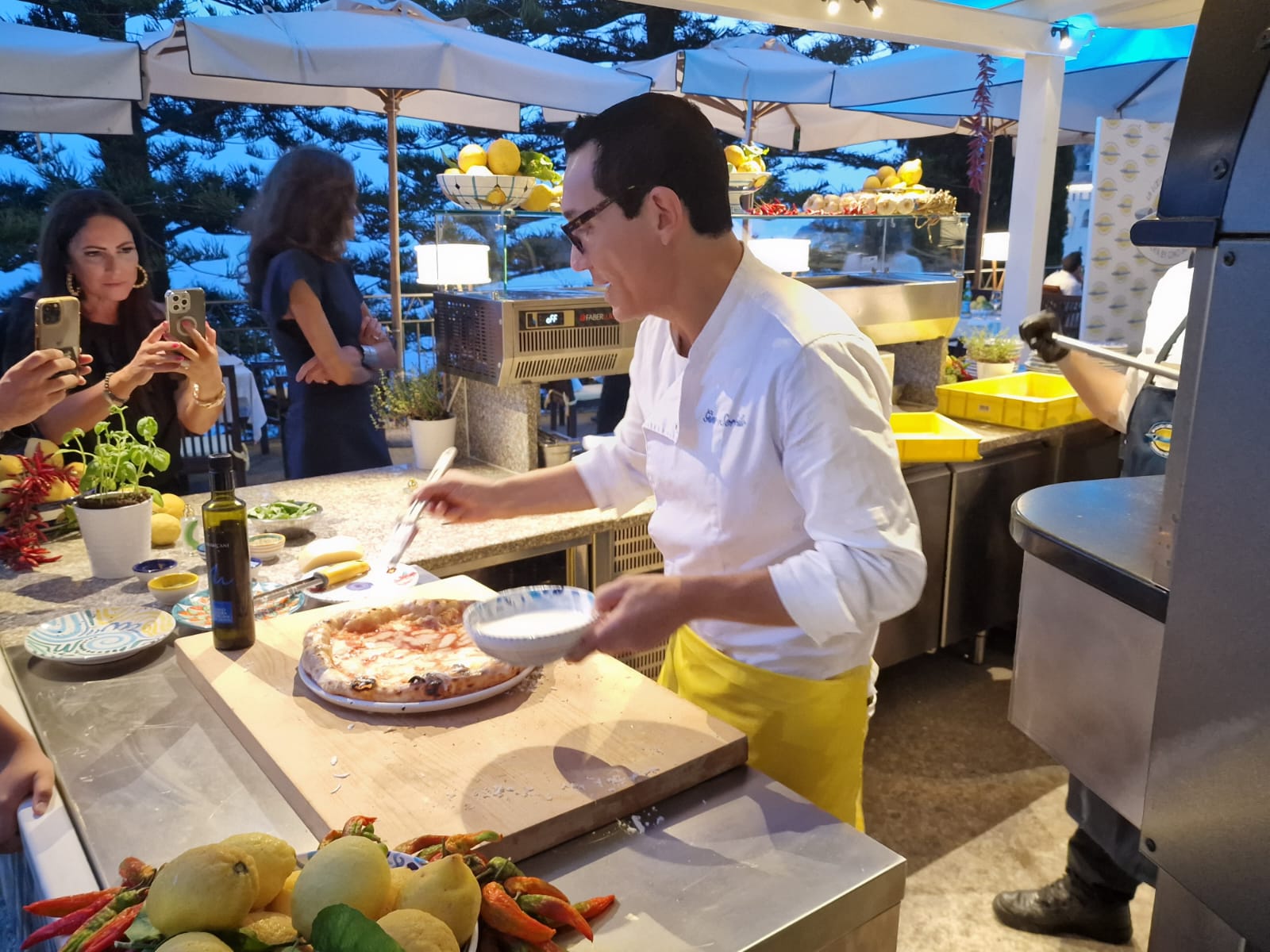 A suggellare l’attenzione alle tipicità locali, non a caso, è stata la presenza, nel corso della serata, del prestigioso Caseificio Staiano di Ravello, noto a livello internazionale per la sua tradizione artigianale, protagonista della produzione del fior di latte impiegato come base per condimenti e topping delle creazioni del maestro.