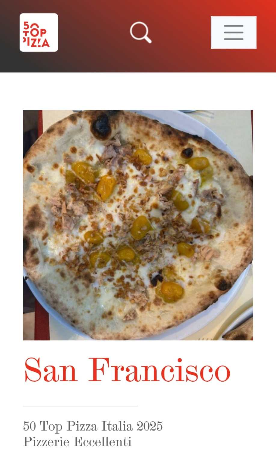 Il riconoscimento premia l’impegno di una realtà a conduzione familiare che si distingue per autenticità, radicamento nel territorio e fedeltà alla tradizione ma con un occhio sempre attento all’innovazione e alla ricerca. La Pizzeria San Francisco è descritta nella guida come un luogo in cui sentirsi accolti e a proprio agio, grazie all’atmosfera calda e al servizio attento e cortese.