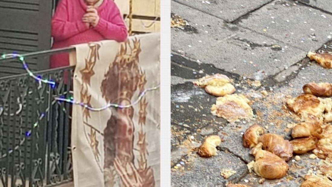 Un episodio molto singolare, infatti, stando a quanto riporta Il Mattino, è accaduto verso le 11.30 di ieri in un vicoletto della città del napoletano, dove una signora anziana, dall’alto del suo balcone da cui i fedeli seguono il passaggio del carro se non scendono in strada, ha svuotato un vassoio di sfogliatelle frolle e ricce colpendo la folla sottostante proprio nel momento di maggior affollamento della processione.