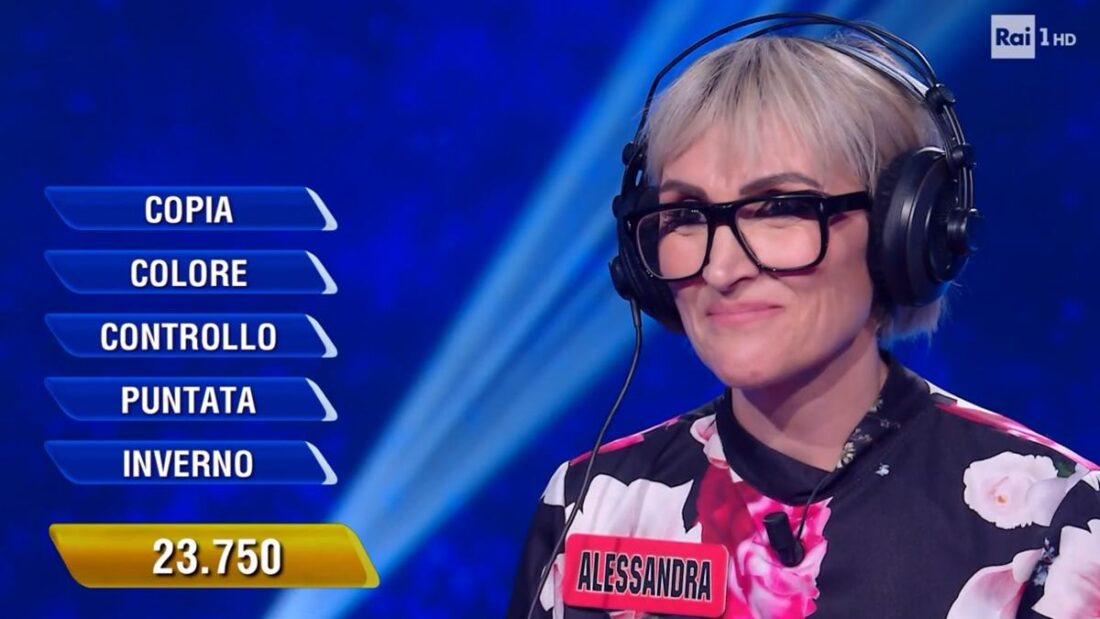Le parole a disposizione per lei sono state: copia, colore, controllo, puntata e inverno. La neo campionessa ha deciso di puntare sulla parola carbone, in particolare, ha spiegato, per il legame con copia che le ha riportato alla mente la famosa copia carbone.