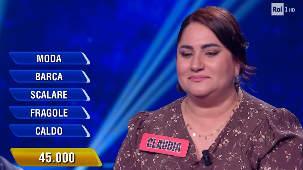 Alla fine Claudia ha scritto Montagna ma si è subito reso conto di aver sbagliato. Flavio Insinna infatti ha confermato che la risposta giusta fosse Posto.