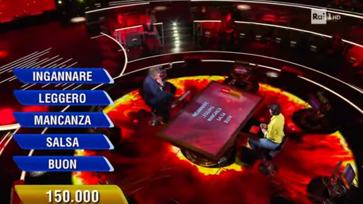 Quindi, proprio per questo motivo, il suo montepremi risultava intatto a quota 150.000 euro. Le parole con cui Roberta ha dovuto confrontarsi sono state le seguenti: salsa, ingannare, leggero, mancanza e buon.