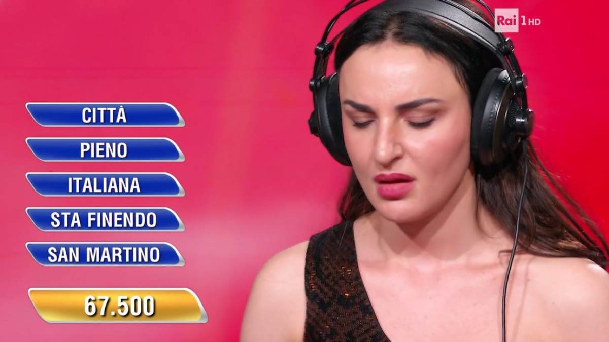 Nonostante la risposta fosse errata, Insinna le ha consentito di utilizzare la risposta di uno dei cuoi compagni di viaggio, in realtà tutti avevano dato la stessa risposta tranne lei, con il cartellino con scritto Estate che è valso 67.500 euro che sono stati donati in beneficenza.