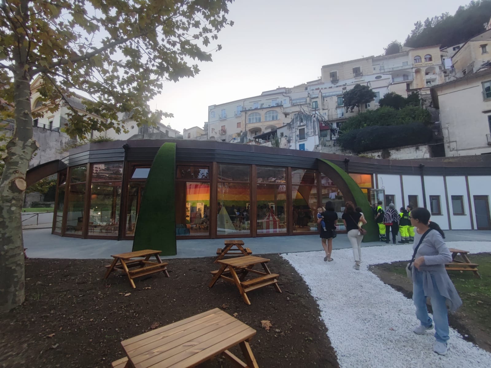 L’inaugurazione vedrà protagonista una struttura innovativa, ad impatto zero, realizzata in legno e vetro, che si integra perfettamente con l’ambiente che la circonda, che parte da una vetrata ariosa che s’inoltra nel ventre della madre terra come un seme messo a dimora per dare i migliori frutti. Il modo migliore per simboleggiare l’investimento che l’amministrazione comunale di Maiori, guidata dal sindaco Antonio Capone, abbia fatto per il futuro delle nuove generazioni.
