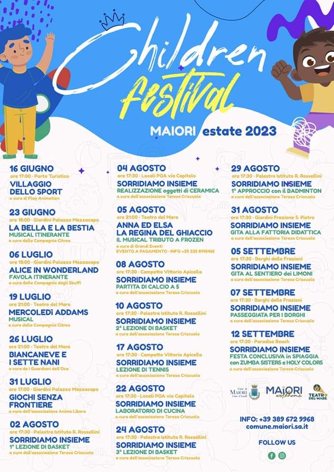 Prende il via oggi a Maiori la programmazione del Children Festival, la sezione dedicata ai più piccoli nell’ambito della rassegna “Maiori WelKhome”.