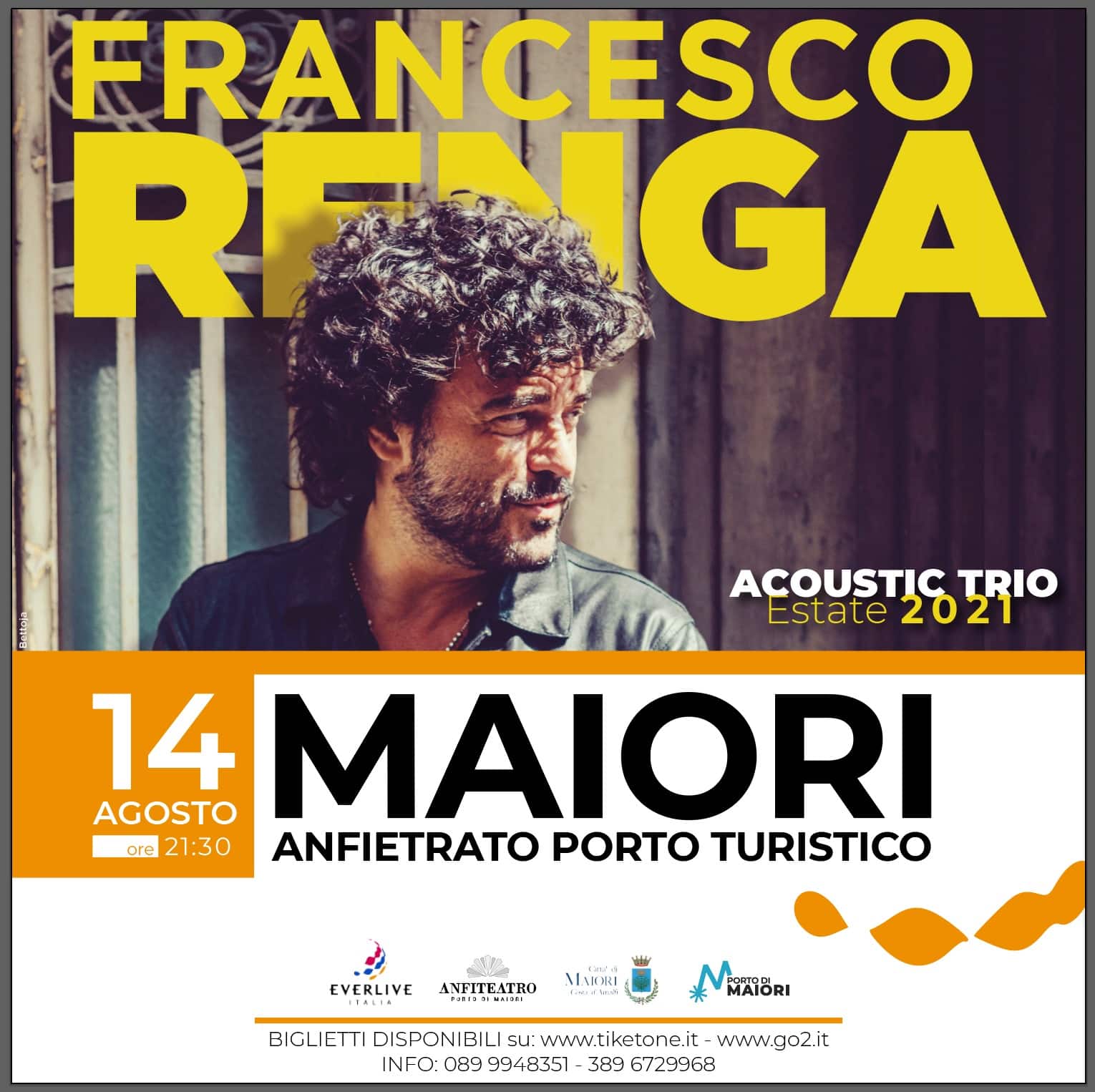 Francesco Renga tornerà live con “ACOUSTIC TRIO – ESTATE 2021” Sabato 14 agosto alle ore 21 presso il Porto Turistico di Maiori (Salerno). Una tappa della sua nuova tourné estiva prodotta da Friends & Partners e organizzata da Everlive Italia con il supporto organizzativo di Veragency.